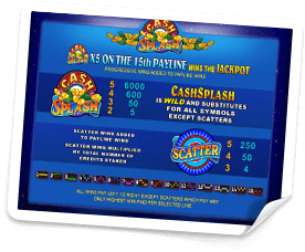 Visst låter bonusar gällande Cash Splash bonus spel som något som är väldigt trevligt. Nu finns det ingen uttalad bonus funktion på Cash Splash men spelet har andra funktioner som gör att spelarna på spelet kan håva in pengar och vinster. En slags bonus på Cash Splash är till exempel scatter-symbolen som ger vinst oavsett var den dyker upp.