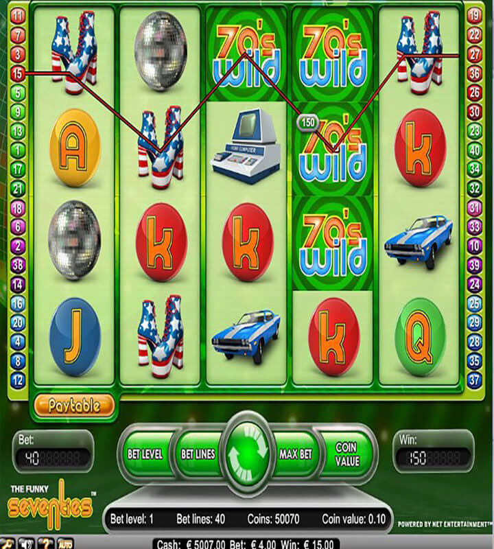 Man kan spela Funky Seventies slot på de flesta nätcasinon eller provspela på Net Entertainments hemsida. Slotten är klassiskt uppbyggd med fem hjul och fyra rader. Man kan spela på upp till 40 insatslinjer, på 1 till 5 insatsnivåer vilket ökar chanserna till att vinna på Funky Seventies. Endast den högsta vinsten per aktiv insatslinje ger utdelning, och vinster infaller när symbolerna är i följd från vänster till höger. Maxinsatsen i Funky Seventies slot är 1000 sek och kan ge en jackpott på hela 2 000 000! Funky Seventies innehåller scattervinster, free spins och stacked wilds. Det är enkelt att spela spelautomaten Funky Seventies som har knappfunktioner som gör det enkelt att spela med maxinsats eller autospela.