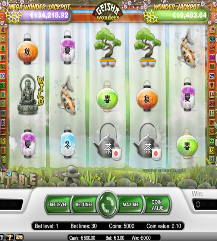 Geisha Wonders slot är utvecklad av Net Entertainment. Den är inspirerad av japanska geishor, bonsaiträd och är en vackert illustrerad slot som utstrålar harmoni. Med sin enkelhet och stillsamhet är det en spelautomat som är lätt att tycka om och som tål att spelas på länge.