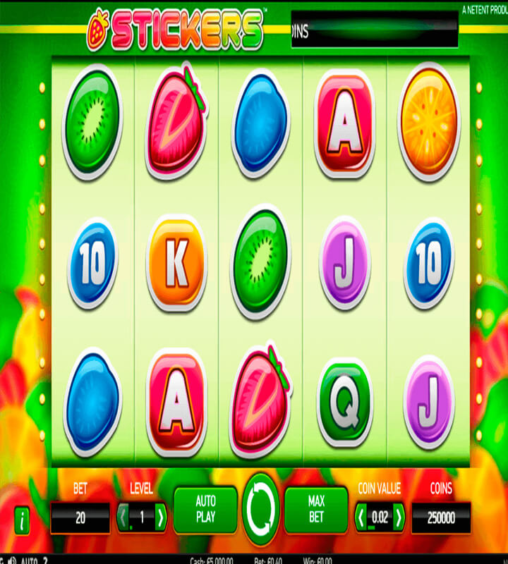 En spelautomat fylld av färg, musik och härliga frukter, det är vad Stickers är! Namnet betyder ”klistermärken” och kanske är det på grund av de wild-symboler som hänger sig kvar på spelplanen för att skapa extra vinstchanser… Men kanske är det på grund av att man fastnar för spelet?