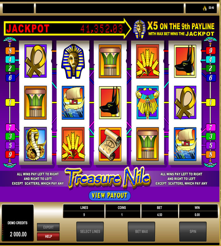Treasure Nile slot har allt man kan förvänta sig av en klassisk spelmaskin och ger dessutom spelaren möjligheten att bli miljonär på ett par sekunder! Sloten har begåvats med en progressiv jackpot, redo att hämtas ut för den med turen på sin sida. Koppla på semestermoodet, släng av dig långkalsongerna och håll utkik efter guldglimmer för nu kliver vi in i den egyptiska värmen vid Nilens strand!