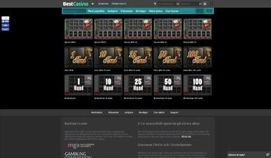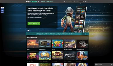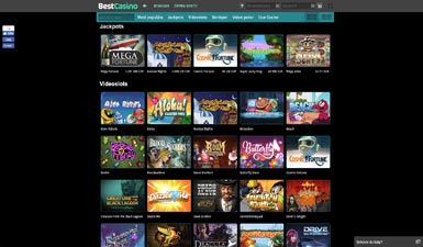 Bestcasino har valt att låta ett menyfält fästa på skärmen, vilket ger dig möjlighet att snabbt navigera i casinots olika spelavdelningar var du än befinner dig i listan över speltitlar. Bestcasino nätcasino med dess fåtaliga underavdelningar är på så sätt också mer nättnavigerat än många andra casinon. I en av dessa underavdelningar ger Bestcasino Live Casino dig möjlighet att spela casinospel tillsammans med riktiga dealers via videolänk i realtid. I nuläget finns dock bara två spel i Live Casinot, och det är därför endast BlackJack och Roulette som gäller där. På Bestcasino nätcasino finns också 8 jackpotspel, där progressiva storvinster av olika storlekar väntar.