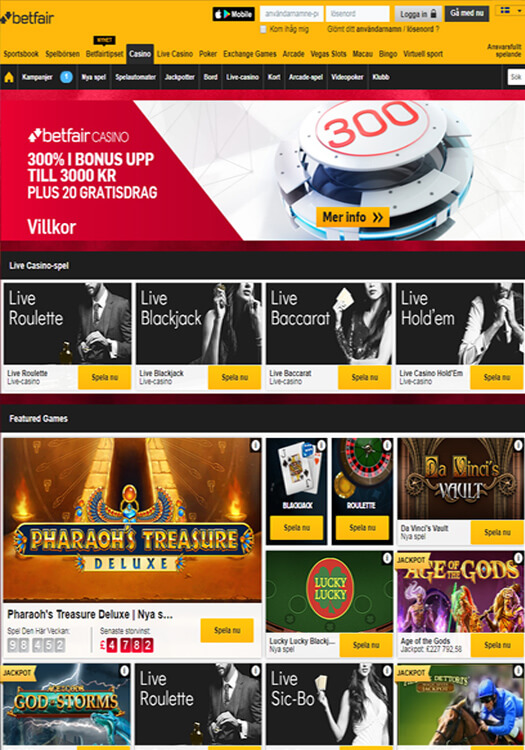 - Hemsida: casino.betfair.com