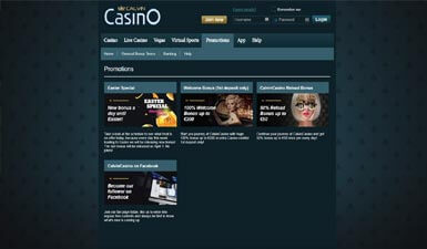 En fast CalvinCasino reloadbonus finns inte men man kan få diverse olika bonusar hos casinot, såsom insättningsbonusar, eftersom det dyker upp då och då.