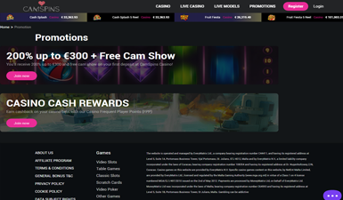 Istället för att få en CamSpins free spins bonus i välkomstpaketet kommer man som sagt att få en cam show. Om man tar emot den ordinarie bonusen får man olika många cam credits för cam showen beroende på hur mycket man sätter in, och om man tar emot VIP-bonusen kommer man att få tusen credits. Men kanske kommer det att dyka upp CamSpins free spins i någon av deras kampanjer, vilket inte är omöjligt eftersom de har en stor samling spelautomater.