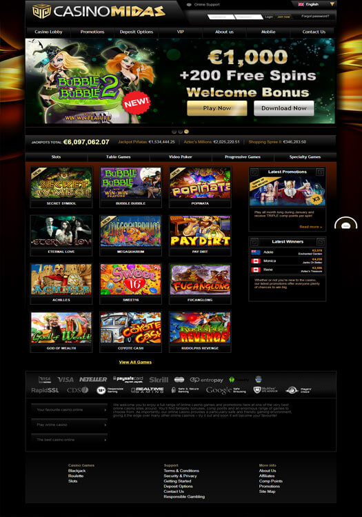 Det märks att kung Midas har rört i casinot eftersom underhållningen hos Casinomidas är minst sagt värdefull. Precis som välkomstbonusarna. Förutom att de har en stor samling spelautomater har de dessutom ett formidabelt utbud när det gäller video poker. Det är även roligt att se ett casino med ett så bra polerutbud. Allt samlat under ett och samma tak.