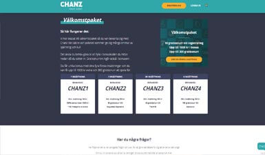Chanz Bonus är ett säkert kort för alla som letar efter värde och free spins på ett casino. Visst, i vissa lägen ska man chansa t.ex när man spelar casino men varför chansa att välja bonus när man har en så säker sak som en Chanz Bonus? Alla nya spelare som skapar ett konto kan ta del av bonusen på den nya casinosidan.
