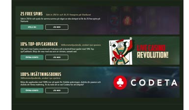 Det är få spel som kan symbolisera ett casino likaväl som Roulette, Black Jack och Baccarat. Codeta Casino strävar efter att bli casinot man associerar med dessa spel. Både var gäller Live Casinot såväl som vanliga casinot. Vi uppskattar när en sida går all-in i en nisch som ingen annan vågat ta. I en industri med massvis med sidor och än fler erbjudanden är det trevligt när någon tänker utanför ramen.