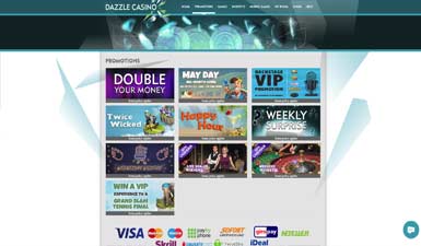 Det kan dyka upp någon form av Dazzle Casino reloadbonus i de regelbundna bonusar man får hos casinot, eftersom man inte vet på förhand exakt hur bonusen man får ser ut.