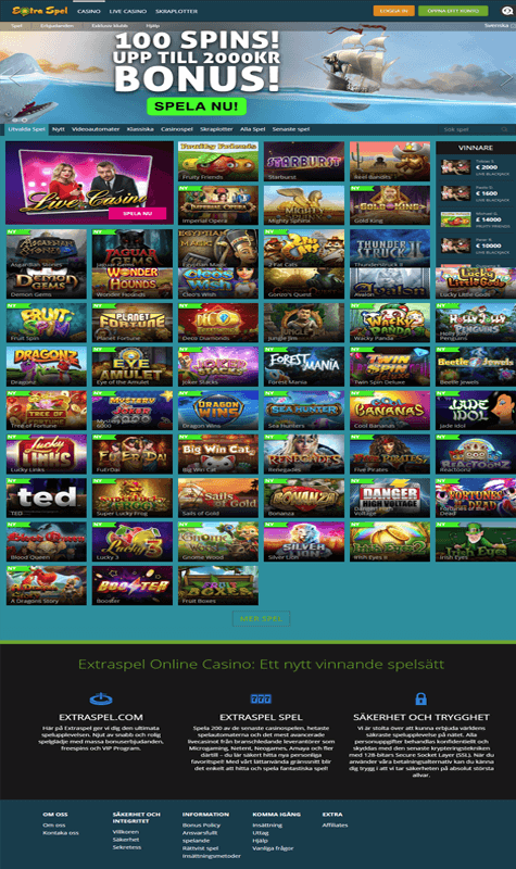 Välkomna till Extraspel, sidan som bjuder på det lilla extra! Här hittar du en salig bladning av casinospel. Alltifrån kära klassiker som Starburst och Twin Spin till lite mer okända titlar som Fruity Friends och Reel Bandits. Följ med så berättar vi mer om din insättnings bonus som väntar. Ett ypperligt tillfälle att testa Extraspel på.