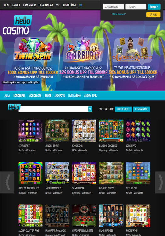 Hello Casino erbjuder: