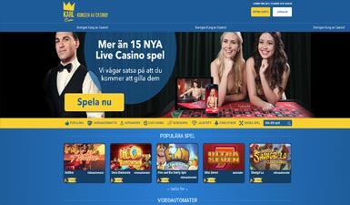 Det svenskaste av alla svenska casinon är nog Karl. Sidan finns bara på svenska och man marknadsför sig endast inom landets gränser. Vi möts av tydliga menyer i gul med en klar blå bakgrund. Sidan gjordes om i början av 2016 och ser nu ännu bättre ut. Den har fått en modernare design och det är lättare att navigera på casinot. Utan att gå händelserna i förväg kan vi även meddela att Karl bonus är en av de mest generösa vid första insättningen.