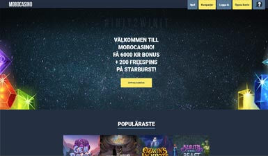 Av de mer permanenta formerna av Mobocasino gratis bonus du kommer få tag på så är välkomsterbjudandet det första du kommer springa in i och i korta drag ger detta dig 40 free spins samt 200% bonus på din första insättning. Maxtaket på denna Mobocasino bonus är 500 kr. Efter det får du en bonus på 50% upp till 1500 kr + ytterligare 60 free spins på Starburst. Sist men inte minst får du 25% Bonus upp till 4000 kr + 100 Freespins på Starburst! Totalt blir det 6000 kr + 200 free spins på Mobocasino!