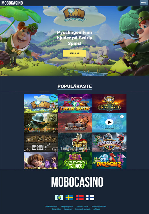 Så vart gäller de Mobocasino free spins som du får? De 200 som du får vid registrering av nytt konto som del av välkomsterbjudandet gäller för den ständiga kundfavoriten Starburst, vilket är en färgglad och lättanvänd videoslot som ständigt toppar listorna. Utöver dessa finns det egentligen inga bonusar som delar ut free spins, i alla fall inte några som är en permanent del av sidans erbjudanden. Nu ska du dock inte beklaga dig för det, för det finns många tillfälliga alternativ somhåller hjulet i rullning och det bästa exemplet är hur free spins delas ut när nya automater släpps. Detta händer såklart inte alltid, men det är ett populärt sätt för att ge nya spel en tjuvstart så håller du ögonen öppna i nyhetsflödet kan du fiska upp något stort.