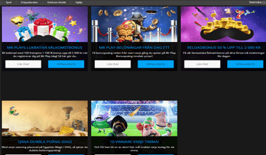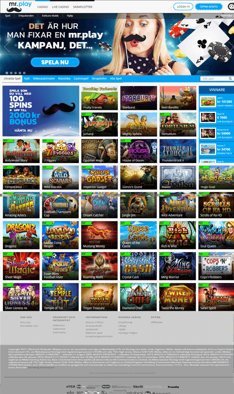Det är bara att trycka på play och börja spela MrPlay och leta dig in i deras casino och live casino där det finns över 320 spel att hugga in på. Och när du är med och tar del av de roliga spelen är du även med och tar del av deras fina lojalitetsprogram där du får spela MrPlay med hjälp av fina bonusar av olika slag.