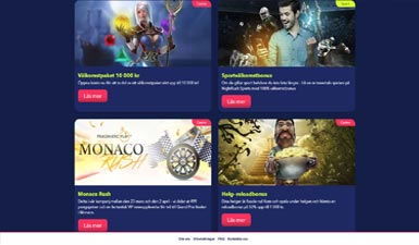 Välkomstpaketet innehåller två insättningsbonusar där man får ta del av en stor summa bonuspengar tillsammans med insättningen, men man får inte någon NightRush gratis bonus i samband med att man registrerar sig hos dem.
