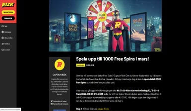 Kapten Rizk har, som är din guide på sidan har förberett fler bonusar till dig. Bestämmer du dig för att testa på Rizk casino väntar förutom din välkomstbonus många spännande snurr The Wheel of Rizk som är sidans belöningssystem. Så fort du fyllt på din power bar som du hittar när du är inloggad belönas du med ett snurr. Där kan du vinna alltifrån kontanta bonusar, turneringsbiljetter och free spins.