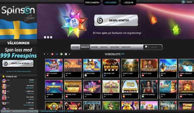 Spinson kan beskrivas med två ord: Free spins. Den utseendemässigt sparsmakade sidan kompenserar för sitt relativt tråkiga utseende med extrem generositet på free spins-fronten till en nästan löjlig grad. 999 free spins på fem automater? Driver du med oss? Nej, det gör de inte. Spana in dem själv ifall du tvivlar.