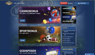 SverigeKronan belönar sina spelare så du får inte bara en bonus hos dem. Varje gång du sätter in pengar på SverigeKronan kan du räkna med att få något tillbaka; vad, varierar från vecka till vecka. Som ny kund kan du räkna med ett generöst välkomsterbjudande. Allting börjar när du bestämmer dig för att göra din första insättning. SverigeKronan bonus ger dig då 30 omsättningsfria free spins direkt vid insättning. Dessutom får du 150% ända upp till 1500kr. Det blir mer än dubbelt så mycket att spela för.